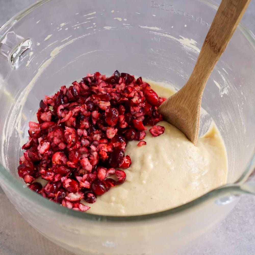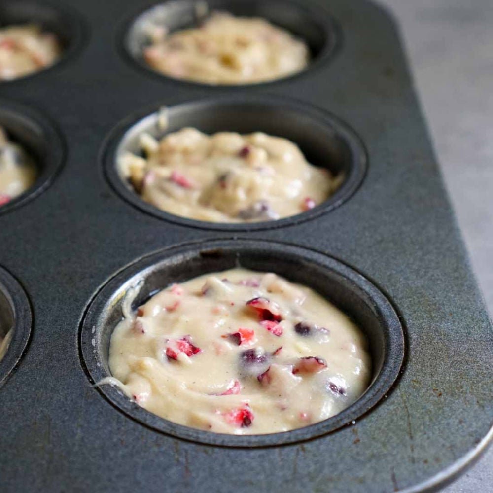 - Chop the cranberries in a food processor, then fold the chopped berries into the muffin batter. Transfer the batter to the muffin pan.