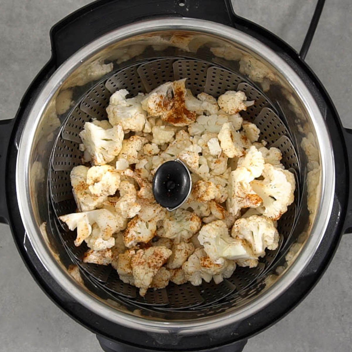 - In a small bowl, combine the smoked paprika, salt, and chili powder. Sprinkle the mixture over the cauliflower, and stir to coat evenly. Transfer the cauliflower to a steamer basket that will fit in your Instant Pot.