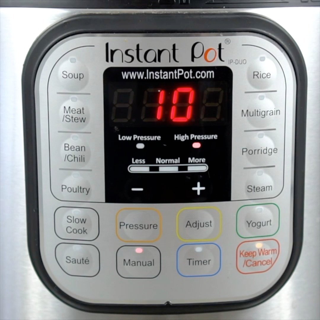 - Close the lid and turn the valve to the sealing position. Cook on manual high pressure for 10 minutes.