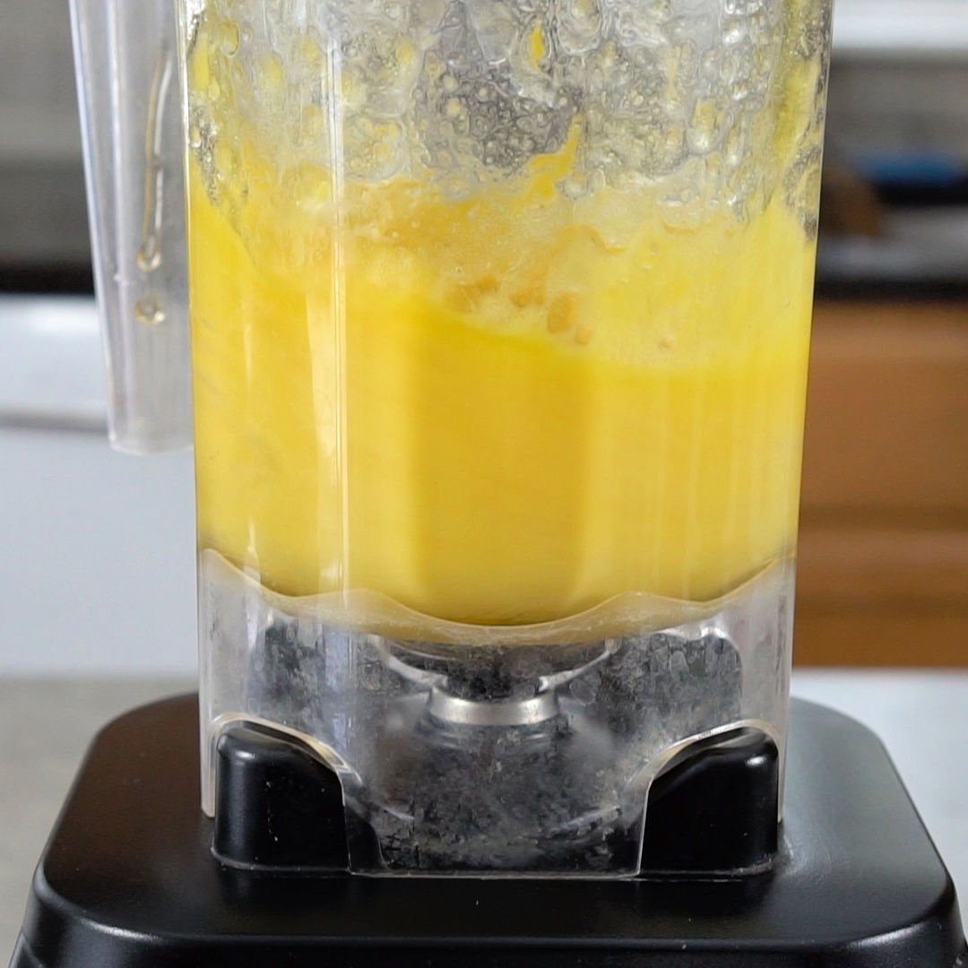 Process the mango salad dressing ingredients in the blender until smooth. Start on a slower setting, and gradually increase the blender speed. Scrape down the sides if needed.