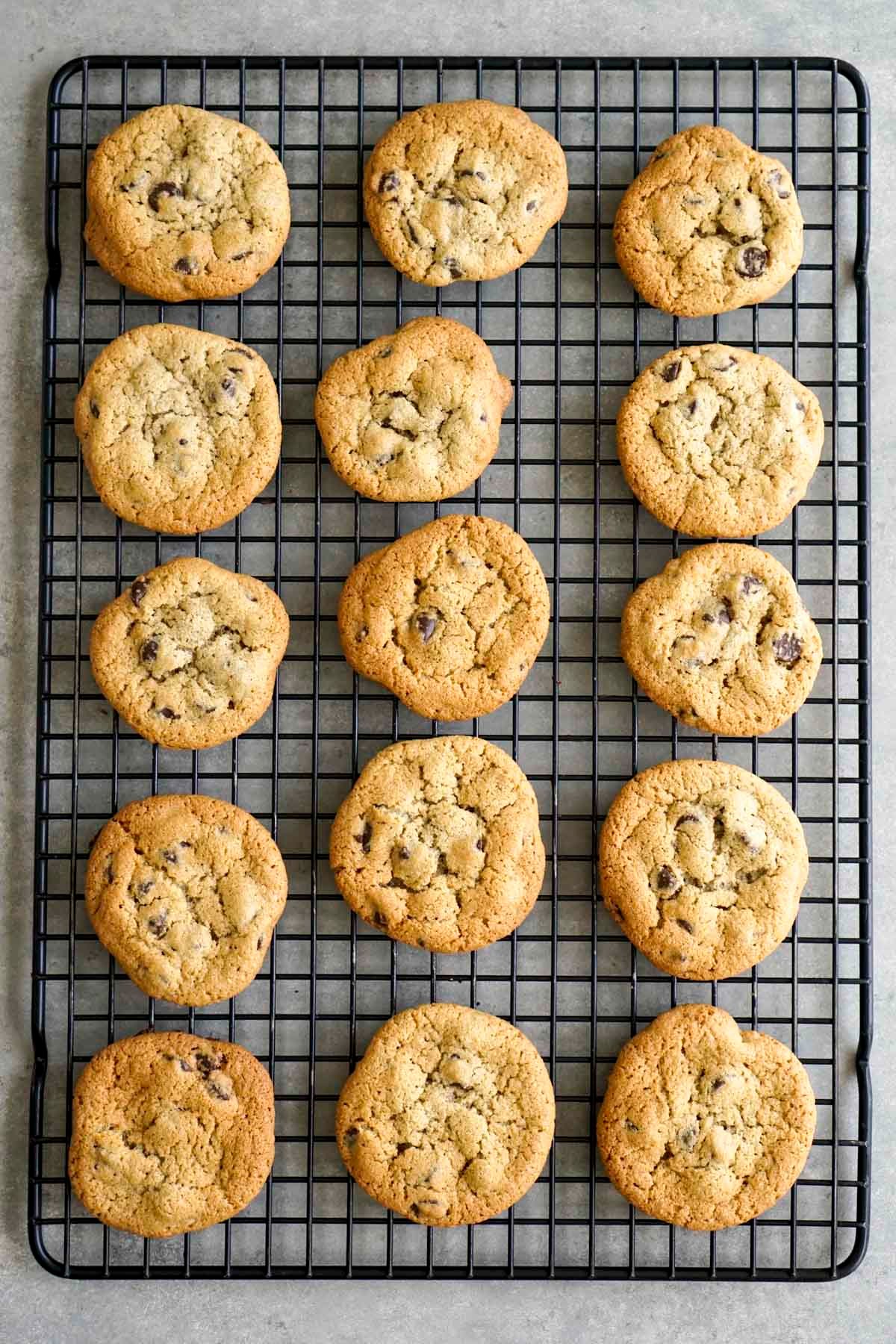 - Bake for 10 to 12 minutes, until set and golden brown. Ten minutes will yield softer cookies, and 12 minutes will yield crispier cookies. Cool completely on a wire rack before storing in an airtight container at room temperature for up to four days. Freeze leftovers in a zipper bag or airtight freezer container. Yields about 27 cookies.