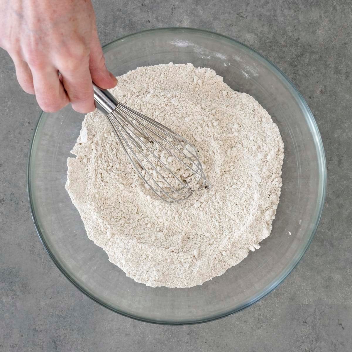 - In a small bowl, whisk together the oat flour, baking soda, baking powder, and salt.
