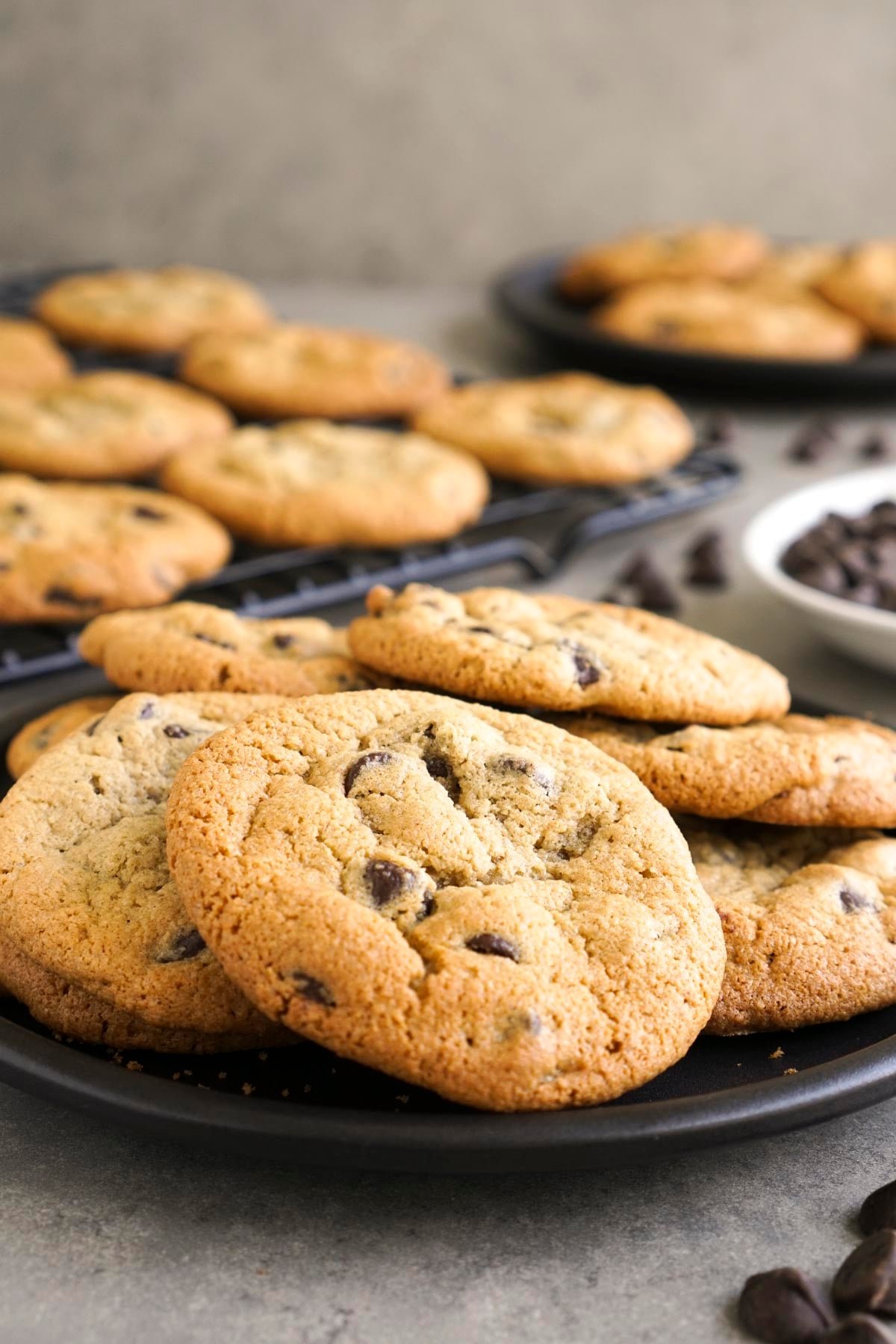 Chocolate chip cookies are a favorite treat in my house. I used to make them with a gluten-free flour mix due to a gluten sensitivity, but I’m now a convert to oat flour cookies. Oat flour is a cheaper, healthier whole grain option, and it works really well in cookies. These have the best chocolate flavor, and the texture is both soft and crispy.