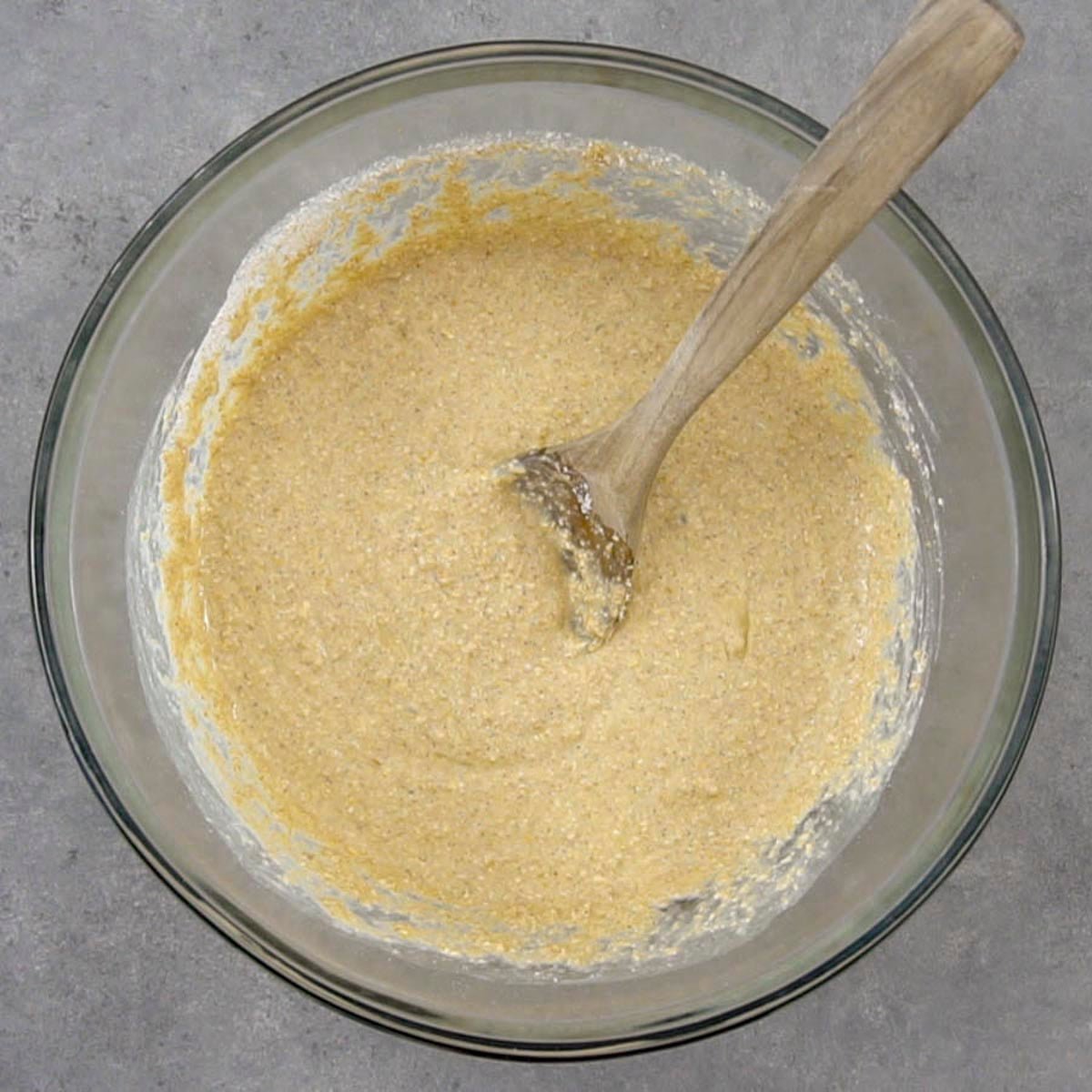 - In a large bowl, mix the eggs, coconut milk, coconut oil, and vanilla extract. Add the dry ingredients and stir to combine.