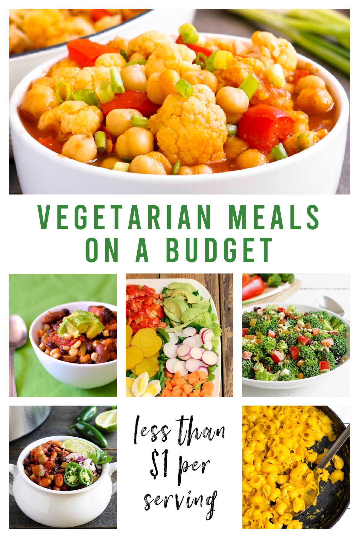 Eating more vegetarian dinners is a great way to save money at the grocery store. These cheap vegetarian meals are an easy, healthy addition to your meal plan. Each recipe costs less than $1 per serving!